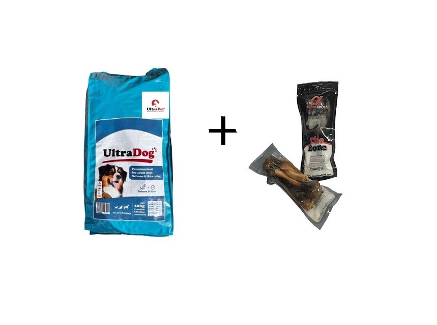 אולטרה דוג כבש/סלמון 20 ק"ג + 4 עצמות חזיר מתנה